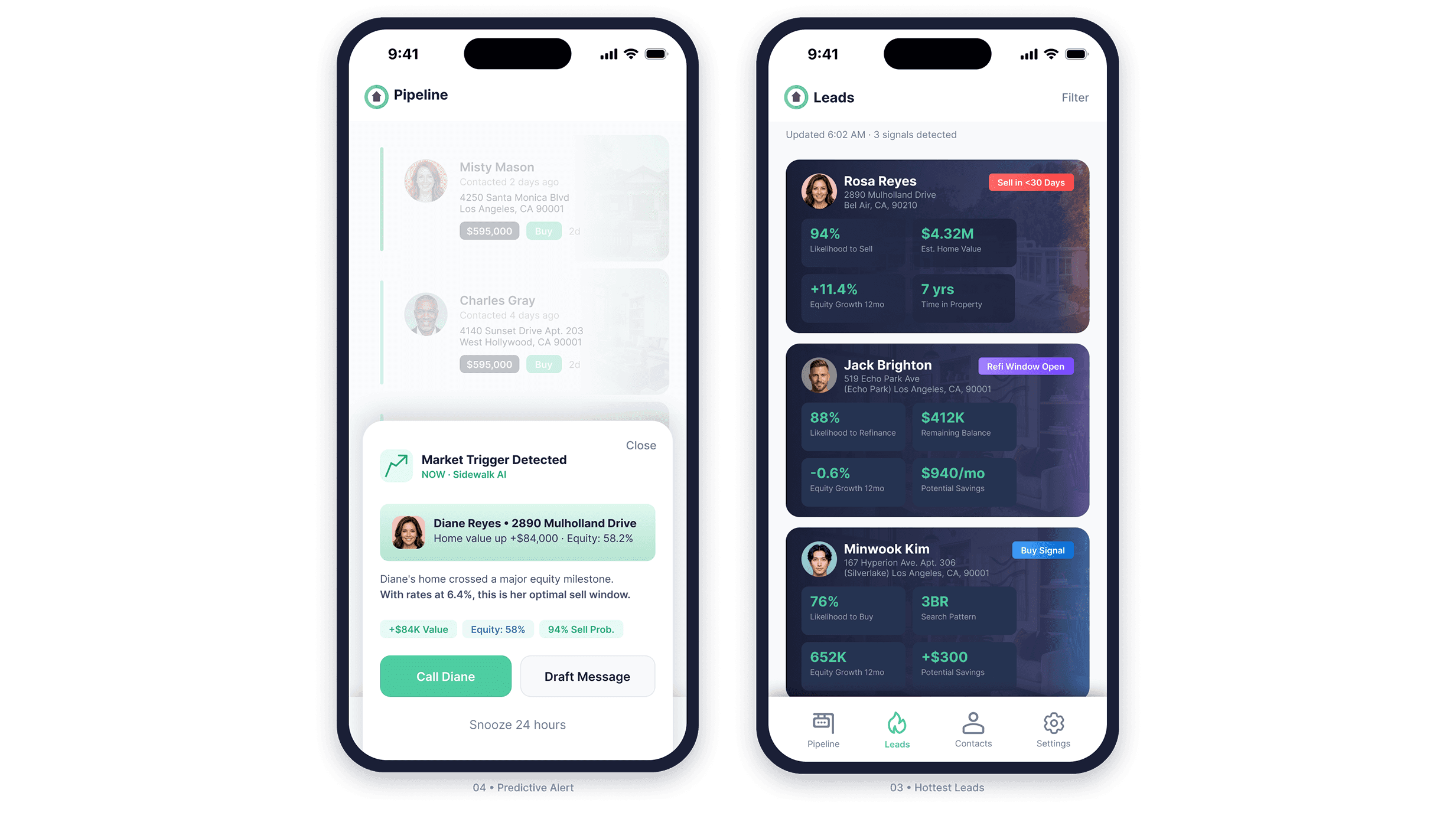 Real estate agents don't have a lead problem. They have a signal problem. The right clients are already in their contact list. The challenge is knowing which ones are ready to move, and reaching them before the window closes. Sidewalk AI was built to solve that.